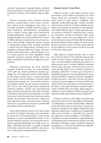enerji üretiminde kullanılabilmesi sayılmaktadır. Yakıt pilleri, hidrojen gibi bir yakıtı doğrudan elekt-